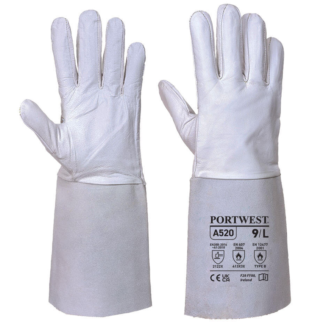 A tökéletes kézügyesség a hegesztők számára. Puha, rugalmas kecskebőr tenyér, strapabíró hasított bőr mandzsettával. B típusú (TIG) hegesztéshez. A varrás végig para-aramidból készült.