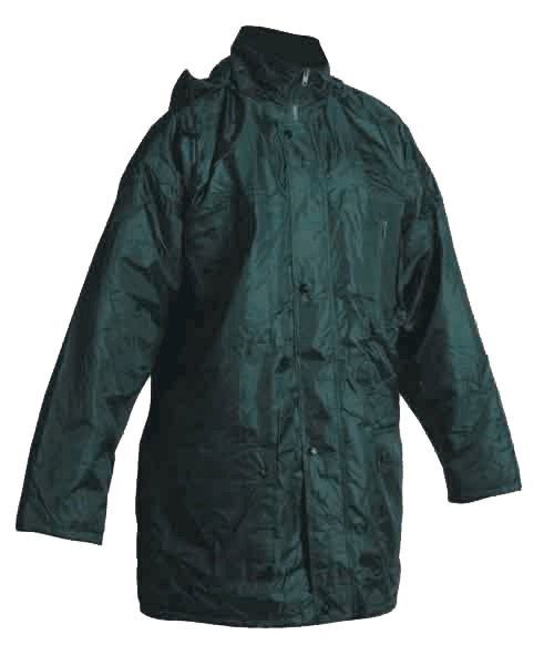 Meleg bélésű, vízhatlan, kapucnis dzseki megerősített varrással.