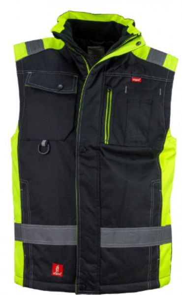 Urgent bélelt mellény fekete-neonsárga fényvisszaverő csíkkal