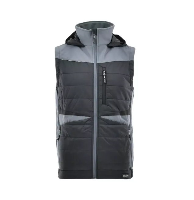 Sara Comfort Plus kapucnis bélelt mellény fekete - szürke