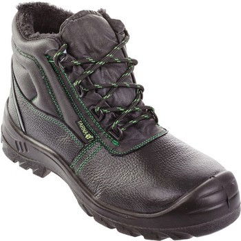 - fémmentes, hideg ellen minősített (CI) biztonsági védőbakancs, teljes műszőrme béléssel és erős marhabőr felsőrésszel