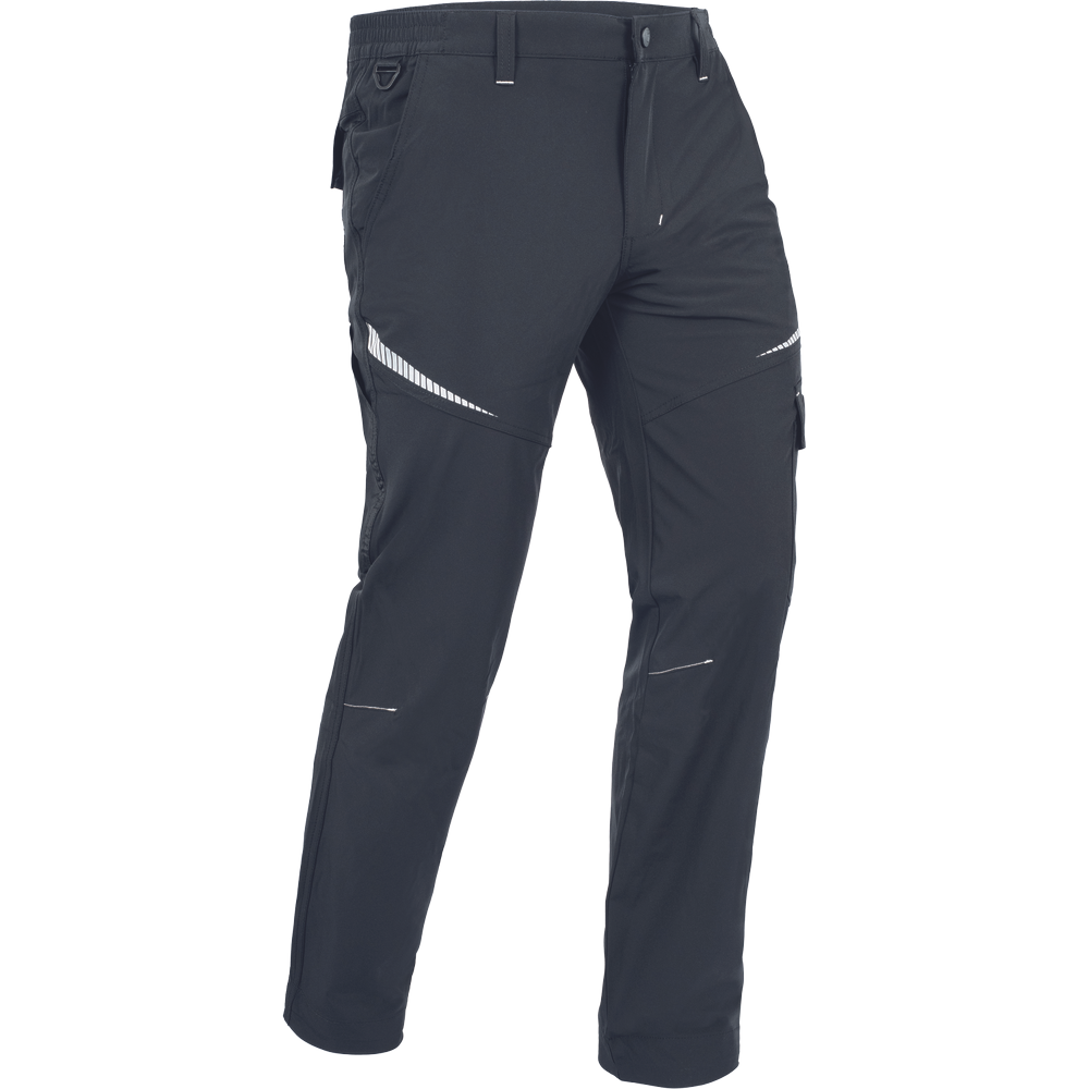 • férfi munkanadrág rugalmas derékpánttal • könnyű, rugalmas anyag a kényelmes viseletért • 2 oldalsó zseb • 2 combzseb • 2 hátsó zseb • fényvisszaverő részletek • állítható szárhossz