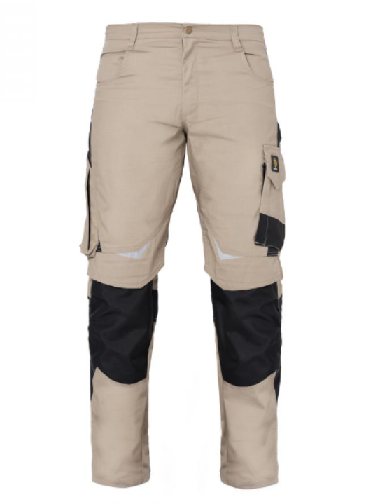 Egyenes szabás, funkcionális kialakítás, hasadásmentes RIPSTOP anyagból. Fényvisszaverő elemek, két klasszikus első zseb, zsebfedős oldalzseb, zollstock számára kialakított zseb, zsebfedős rávarrt farzsebek, térdelőpárnának kialakított térdzsebek CORDURA erősítéssel, erősített varratok a tartósság érdekében. Anyaga: 65% poliészter, 35% pamut. Anyagvastagság: 260g/m2