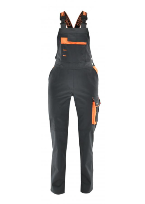 Anyaga: 95% pamut, 5% spandex. Anyagvastagság: 250g/m2. Kényelmes, egyszerű női munkaruha. Nagyon tartós anyag, elasztikus betétekkel a nagyobb kényelemért, elasztikus, állítható hosszúságú kantárral, több funkcionális zsebbel.