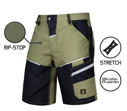 Strapabíró pamut és spandex anyagból RIP-STOP szövéssel. Fényvisszaverő elemekkel.