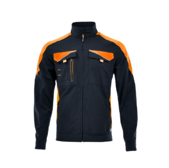 Cipzáros kabát több különböző funkciójú zsebbel, patentos mandzsettával, egyes zsebek szegélyén, illetve a háton fényvisszaverő csíkokkal. Anyaga: Canvas Active - 58% pamut/40% poliészter/2% spandex - speciális szövésű anyag, melyben a spandex két irányban ad rugalmassági lehetőséget a szövetnek. Anyagvastagság: 260g/m2
