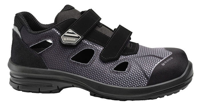 Base S1P munkavédelmi szandál technikai textil felsőrésszel, ESD tulajdonságokkal. Kompozit orrvédelemmel ellátott, ütéscsillapítás a saroknál. Antisztatikus és szénhidrogéneknek ellenálló egyedi kialakítású talp, a férfi és női lábnak megfelelő külön kapli szélességgel is választható. Javasolt felhasználási területek: elektronika, könnyűipar, kereskedelem, szolgáltatóipar, logisztika. Felhasznált anyagok és technológiák: Felsőrész: technikai textil. Bélés: SmellStop szagsemlegesítő és antibakteriális technológiával. Kapli: Kompozitból. Középtalp: Fresh'n Flex talpátszúrás elleni védelemmel. Talp: Fáradtsággátló AirTech egysűrűségű technológiával.