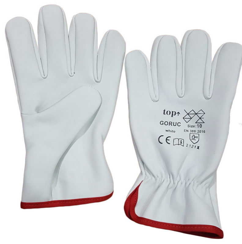 TOP GORUC kecskebőr védőkesztyű, gumírozott mandzsetta, fehér/piros