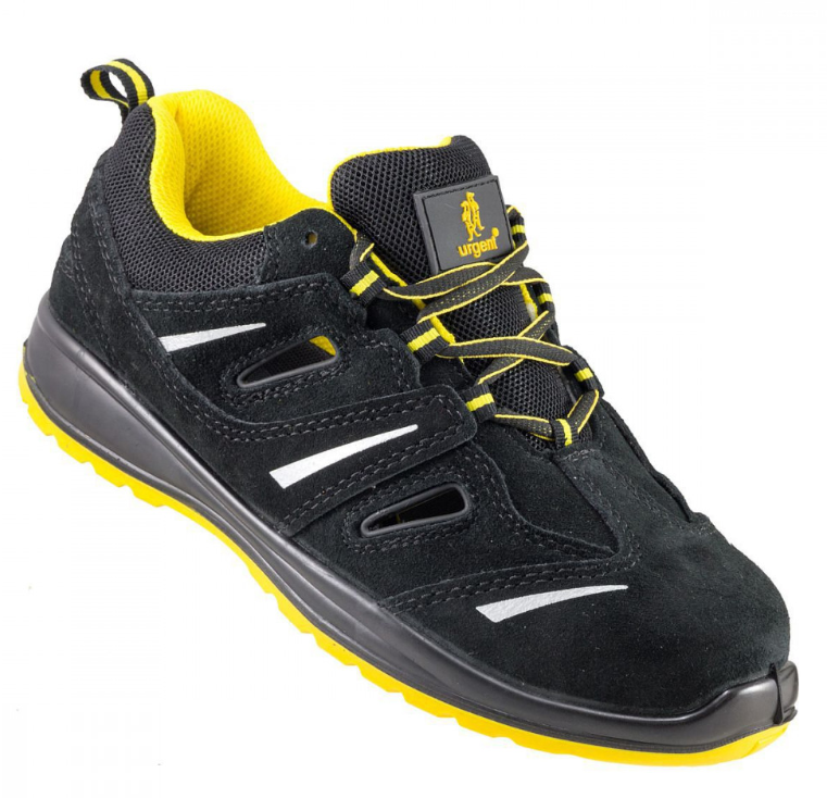 cipőfelsőrész: tartós velúrbőr, féynvisszaverő csíkokkal ellátva, oldalt szellőző lyukakkal talp: duplasűrűségű PU csúszásmentes, olajálló, erősített energiaelnyelő sarokrésszel