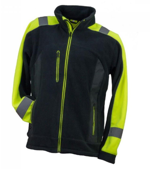 Cipzáras polár pulóver lélegző anyagból, Oxford 300D erősítéssel, fényvisszaverő csíkokkal. Anyaga: 100% fleece poliészter, súlya: 300g/m2.
